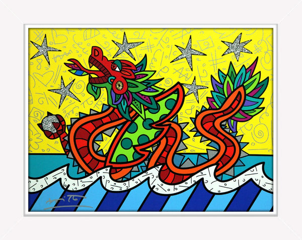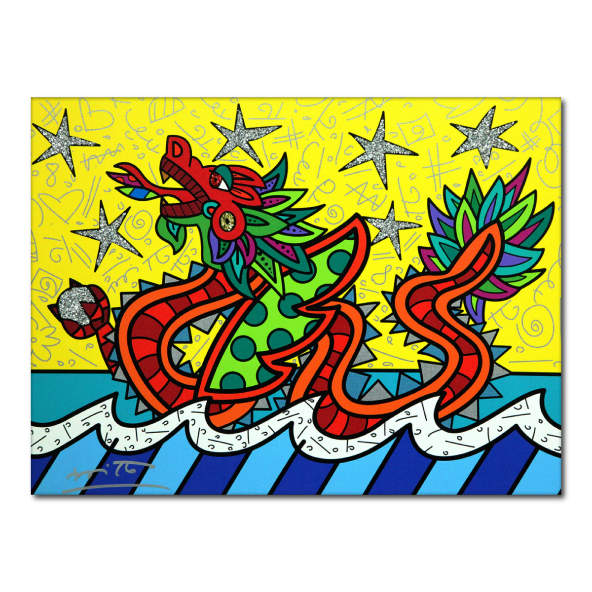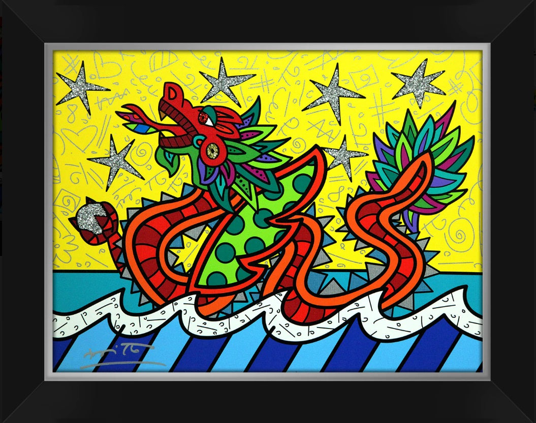 鮮やかな色彩と輝きが調和したキャンバスには、ロメロ・ブリット本人による直筆サインが添えられています。