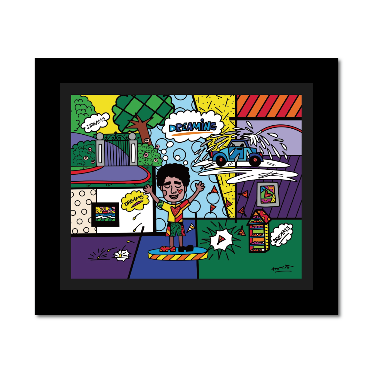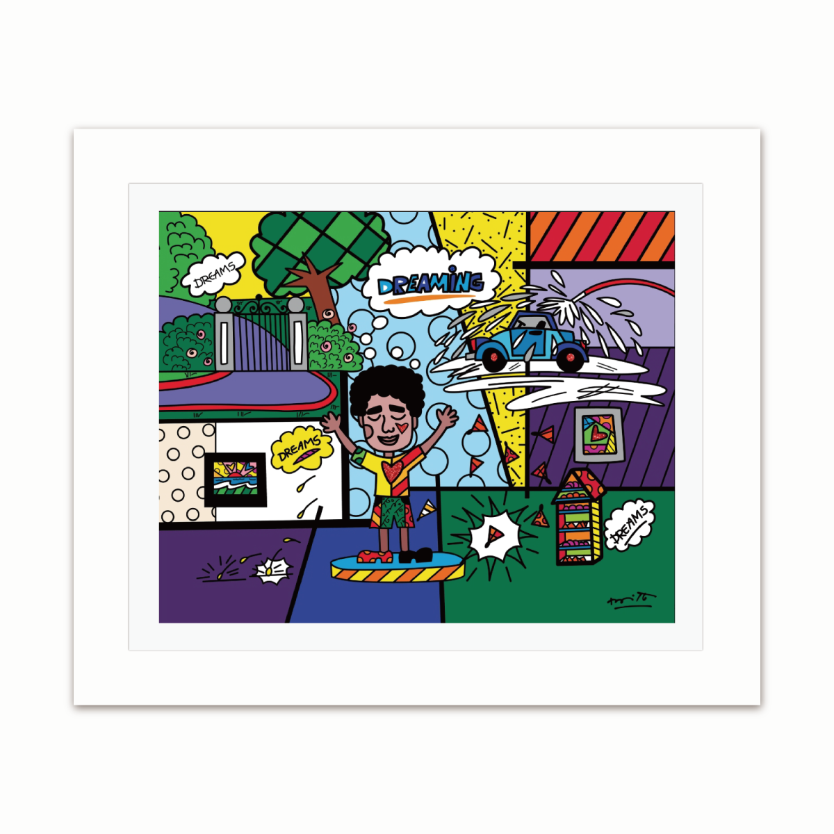 鮮やかな色彩と輝きが調和したキャンバスには、ロメロ・ブリット本人による直筆サインが添えられています。
