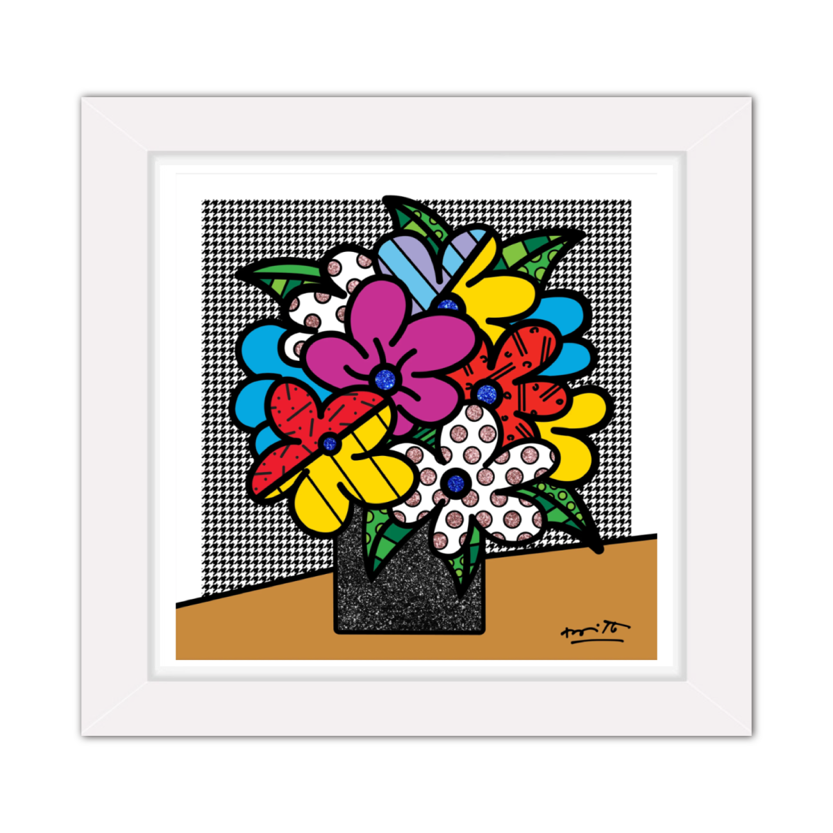 鮮やかな色彩と輝きが調和したキャンバスには、ロメロ・ブリット本人による直筆サインが添えられています。