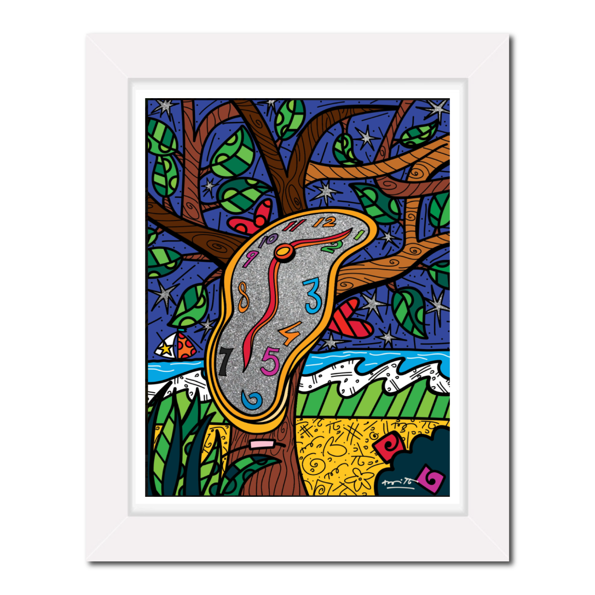 ロメロ・ブリットはサルバドール・ダリの「記憶の固執」に触発され、鮮明な色使いとダイヤモンドダストの装飾を施し、歴史に名を残す芸術作品に新しい生命を与えました。
