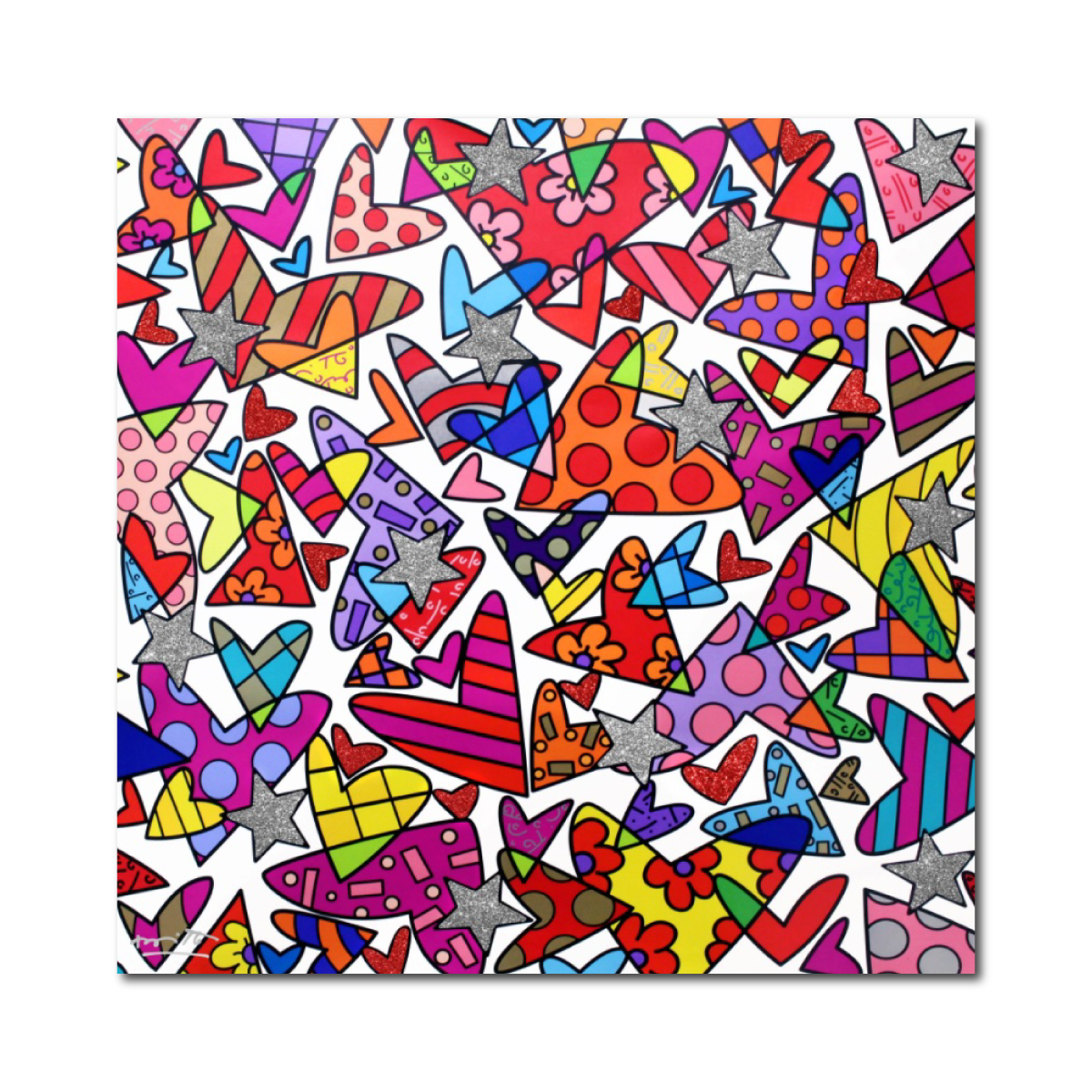 鮮やかな色彩と輝きが調和したキャンバスには、ロメロ・ブリット本人による直筆サインが添えられています。