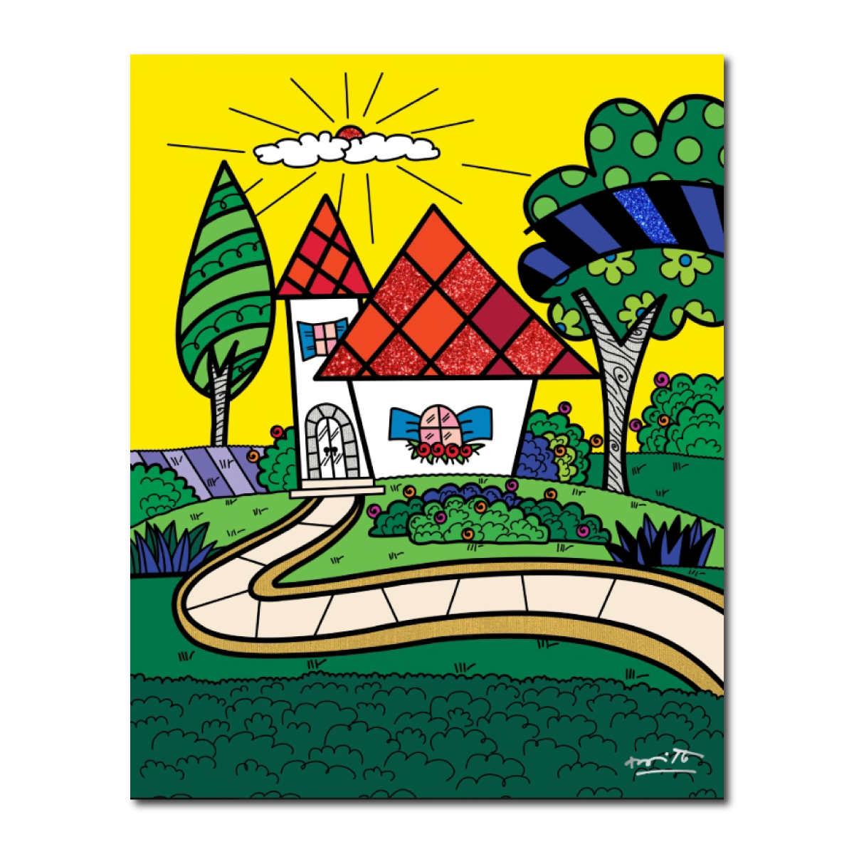 鮮やかな色彩と輝きが調和したキャンバスには、ロメロ・ブリット本人による直筆サインが添えられています。