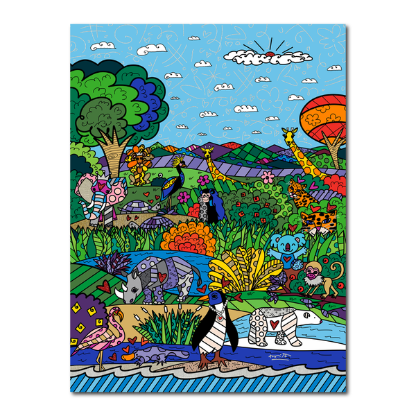 鮮やかな色彩と輝きが調和したキャンバスには、ロメロ・ブリット本人による直筆サインが添えられています。