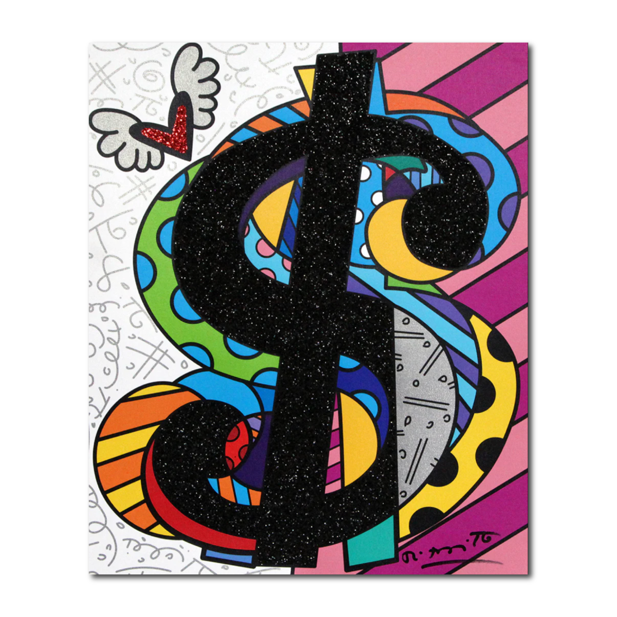 鮮やかな色彩と輝きが調和したキャンバスには、ロメロ・ブリット本人による直筆サインが添えられています。