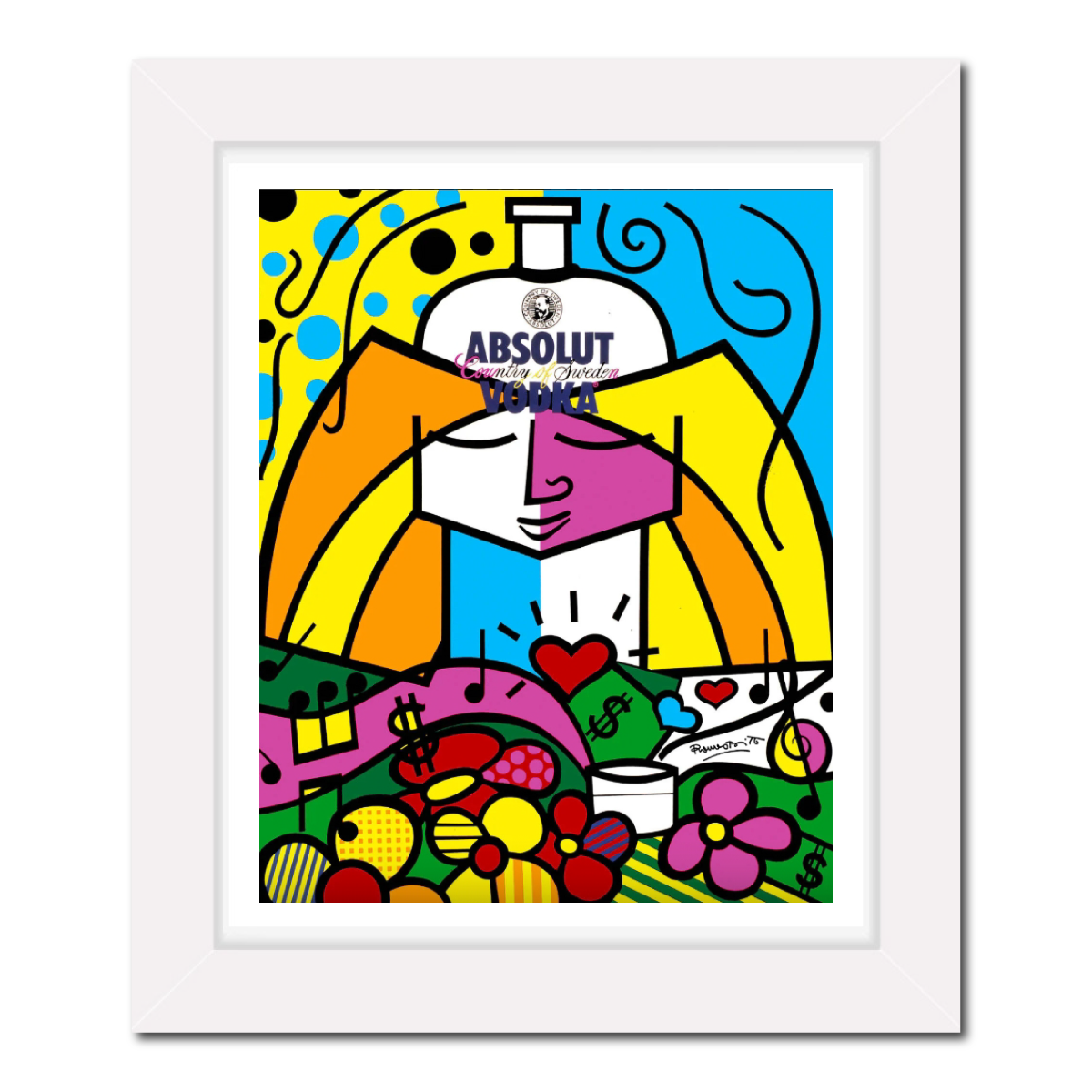 鮮やかな色彩と輝きが調和したキャンバスには、ロメロ・ブリット本人による直筆サインが添えられています。