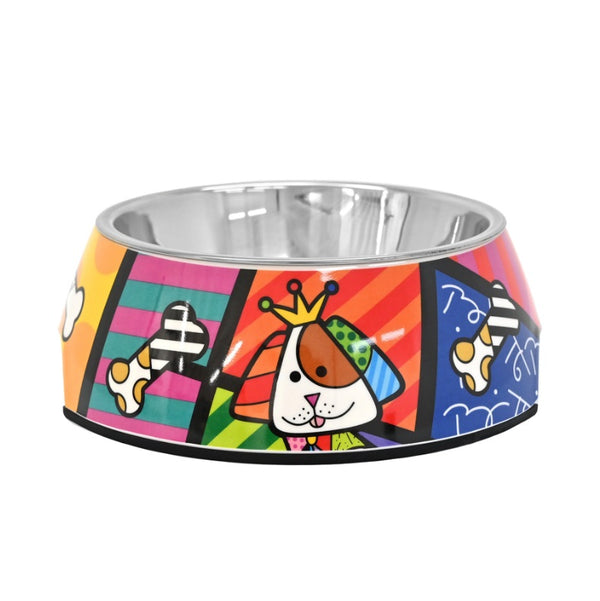 ロメロ・ブリットのカラフルで楽しいアートワークが施されたペットボウルは、ペットの食事時間をもっと楽しくします。