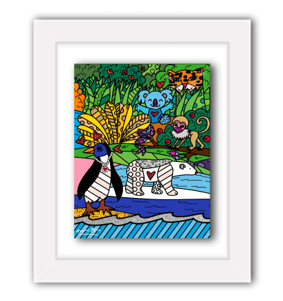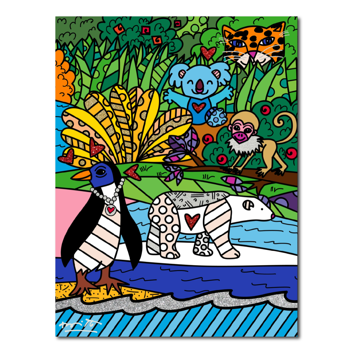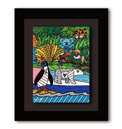 鮮やかな色彩と輝きが調和したキャンバスには、ロメロ・ブリット本人による直筆サインが添えられています。