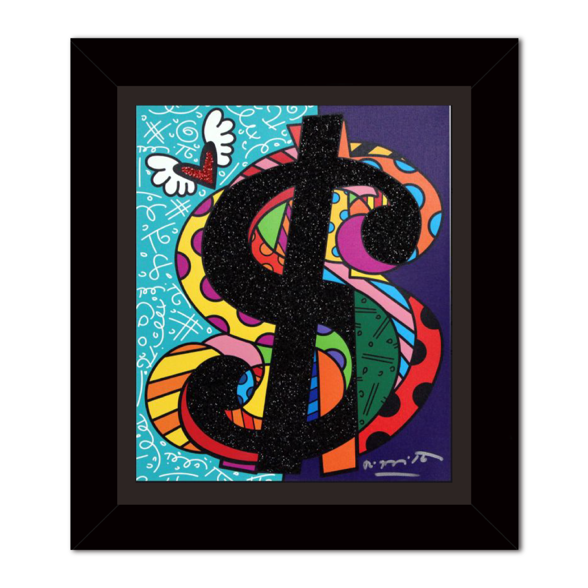 鮮やかな色彩と輝きが調和したキャンバスには、ロメロ・ブリット本人による直筆サインが添えられています。