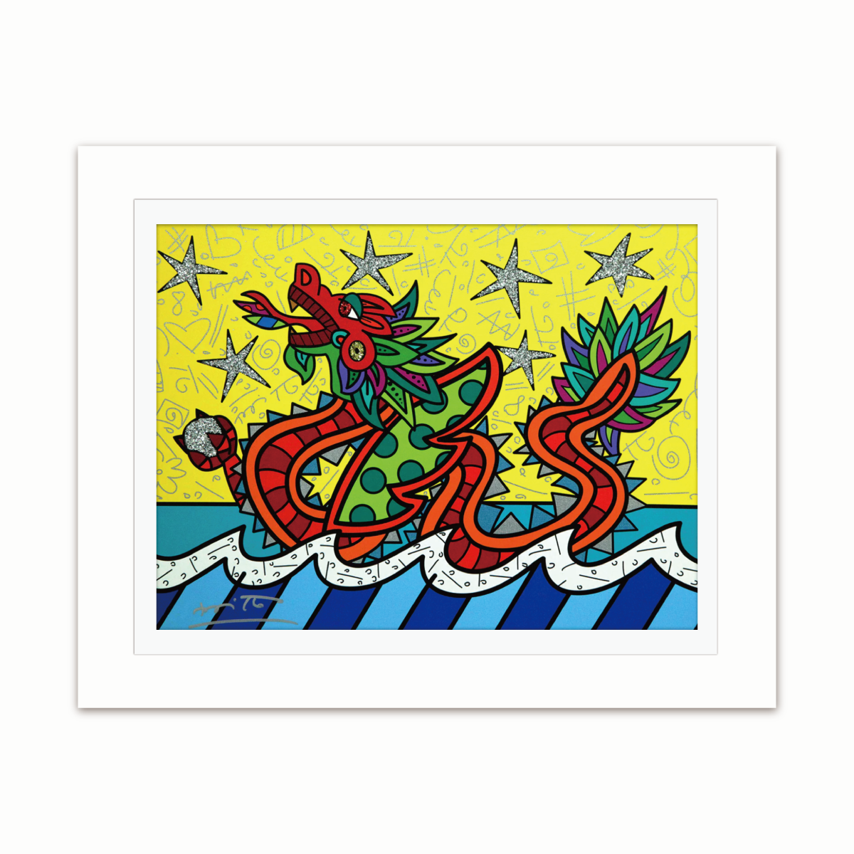 鮮やかな色彩と輝きが調和したキャンバスには、ロメロ・ブリット本人による直筆サインが添えられています。