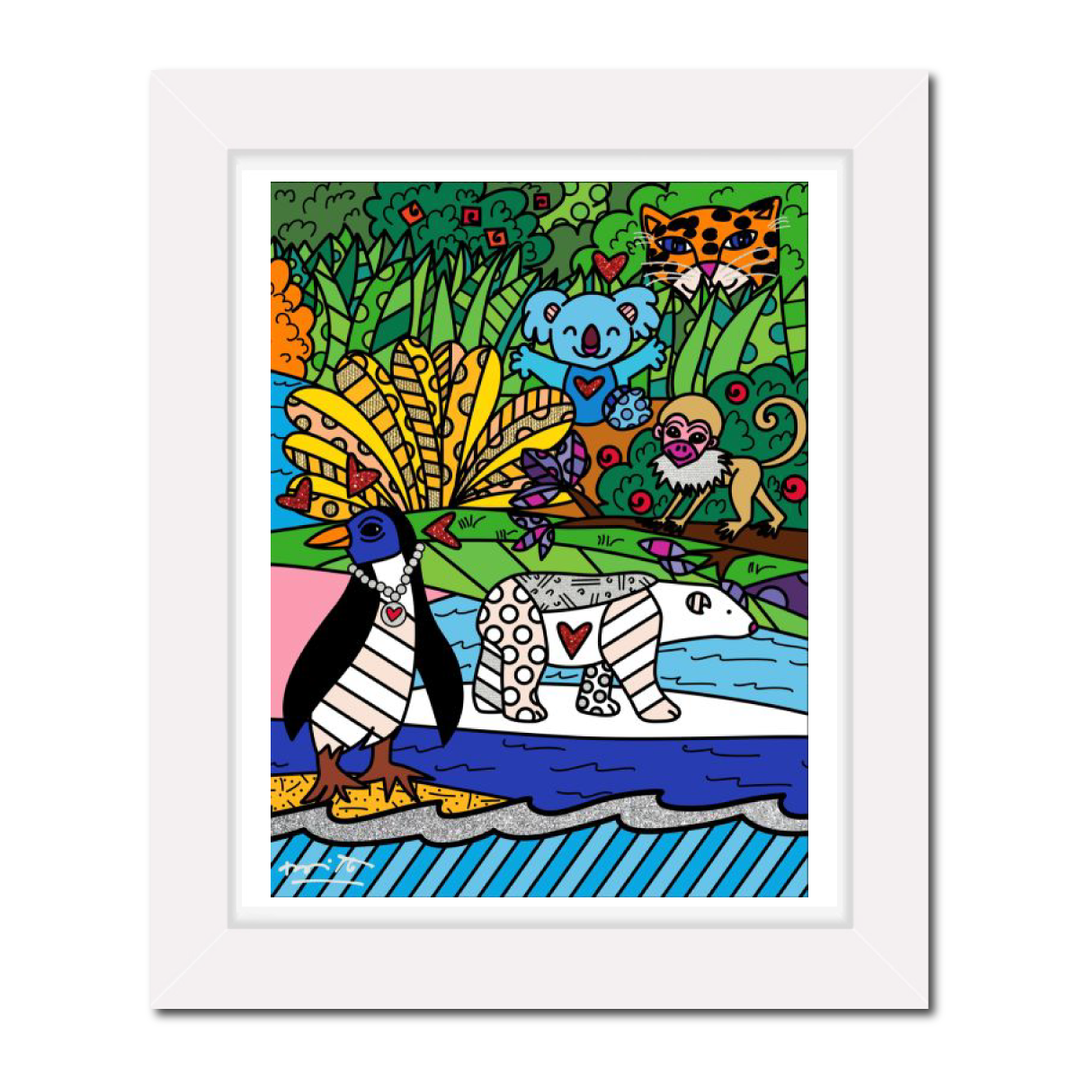 鮮やかな色彩と輝きが調和したキャンバスには、ロメロ・ブリット本人による直筆サインが添えられています。